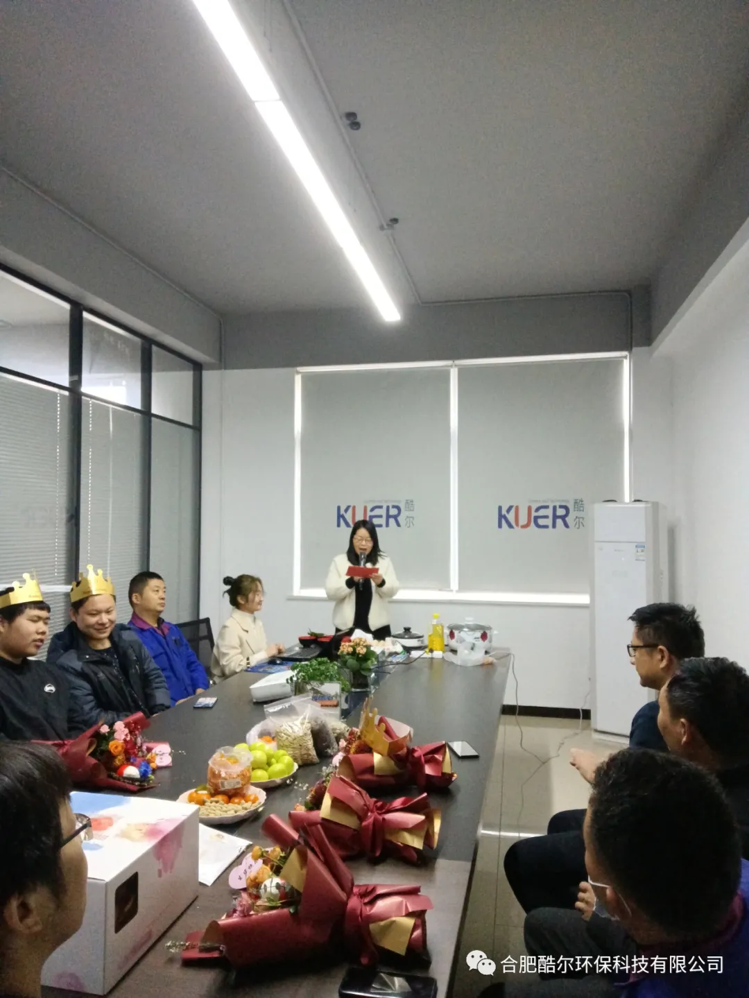 陽春三月,春暖花開,酷爾環(huán)保為二月生日的員工舉辦了一場別開生面的生日聯(lián)歡會,眾人相聚,縱情歡笑,團隊一體,共建輝煌。會議室一改往日嚴(yán)肅莊重,取而代之的是芳香四溢的鮮花、香甜可口的蛋糕、水果、小零食,儼然成為了party主會場~